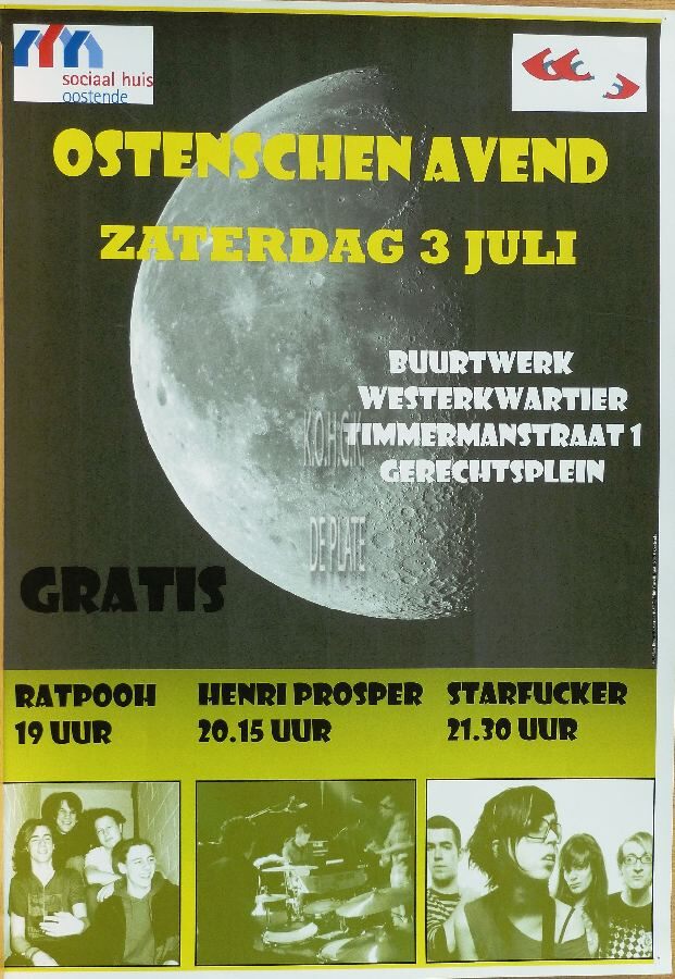 Formaat : 45 x 30 cm. - Buurtwerk Westerkwartier, Timmermanstraat 1, Gerechtsplein. Ratpooh 19 uur. Henri Prosper 20.15 uur. Starfucker 21.30 uur