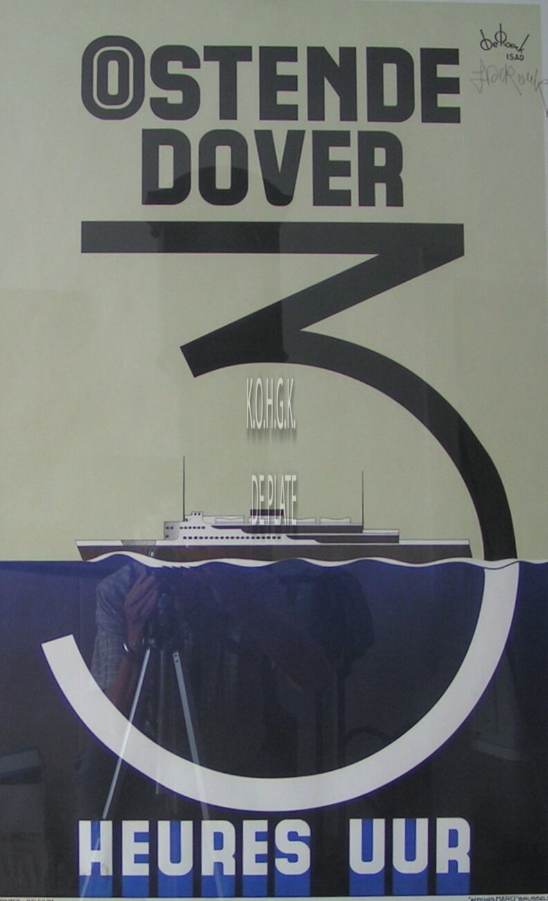 Affiche in kader, formaat : 66 x 105 cm. - Rechts boven en gesigneerd : De Roeck