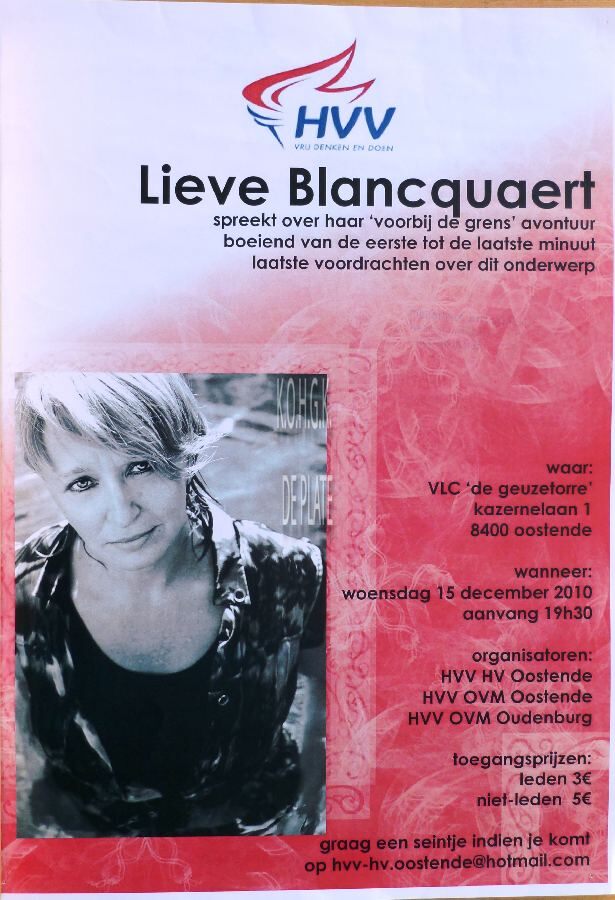 Formaat : 42 x 30 cm. Lieve Blancquaert spreekt over haar "voorbij de grens" avontuur, boeiend van de eerste tot de laatste minuut. Laatste voordrachten over dit onderwerp.