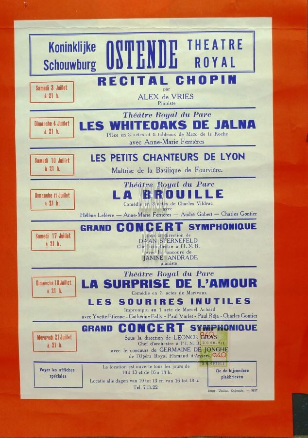 21 Juillet : Grand concert symphonique, sous la direction de Leonce Gras. Avec le concours de Germaine De Jonghe de l'Opéra Royal Flamande d'Anvers.
