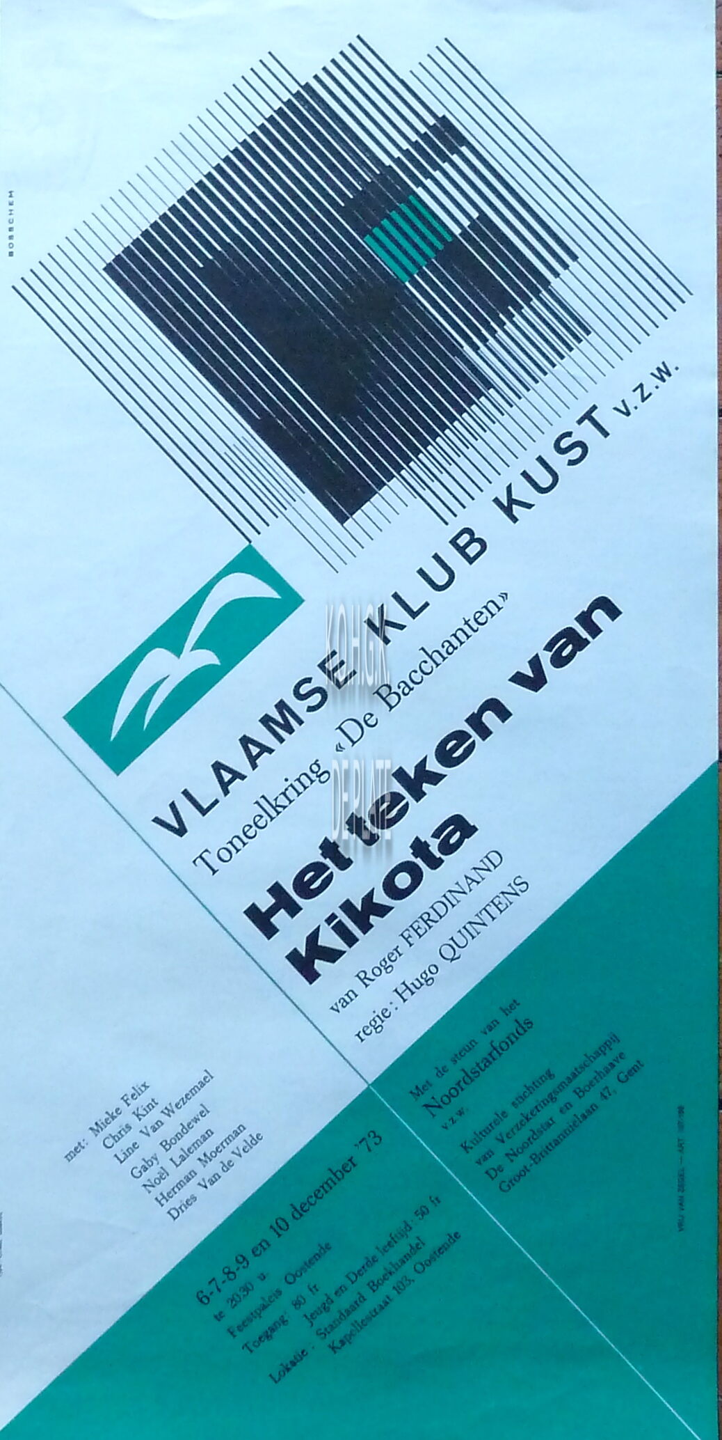 Formaat: 55 x 27 cm. Vlaamse Klub Kust. Van Roger Ferdinand. Regie: Hugo Quintens. Met Mieke Felix, Line Van Wezemael, Gaby Bondewel, Noël Laleman, Herman Moerman en Dries Van de Velde. Met de steun van het noordstarfonds.