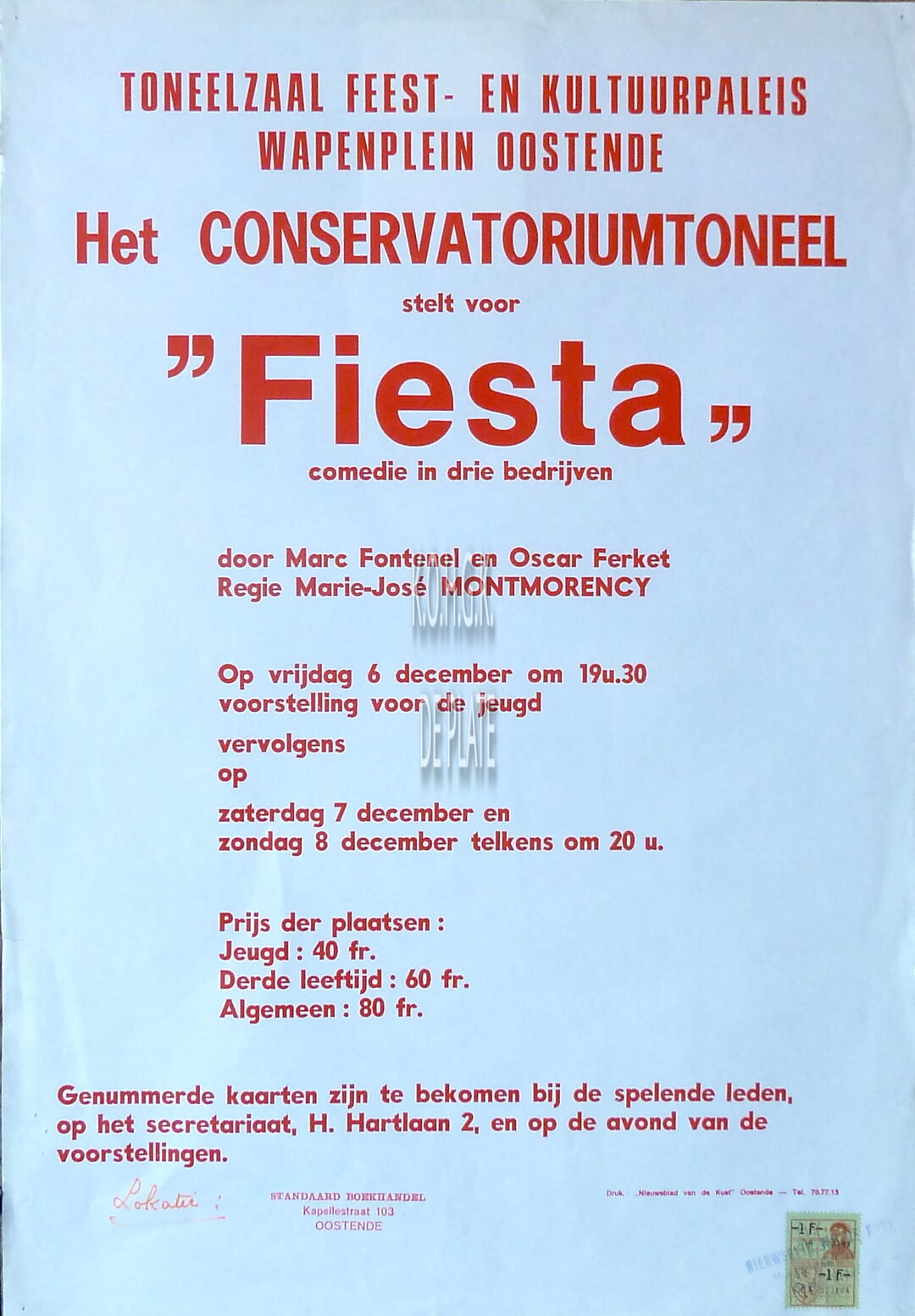 Formaat : 52 x 36 cm. - Een comedie in drie bedrijven. Door Marc Fontenel en Oscar Ferket. Regie : Marie- José Montmorency.