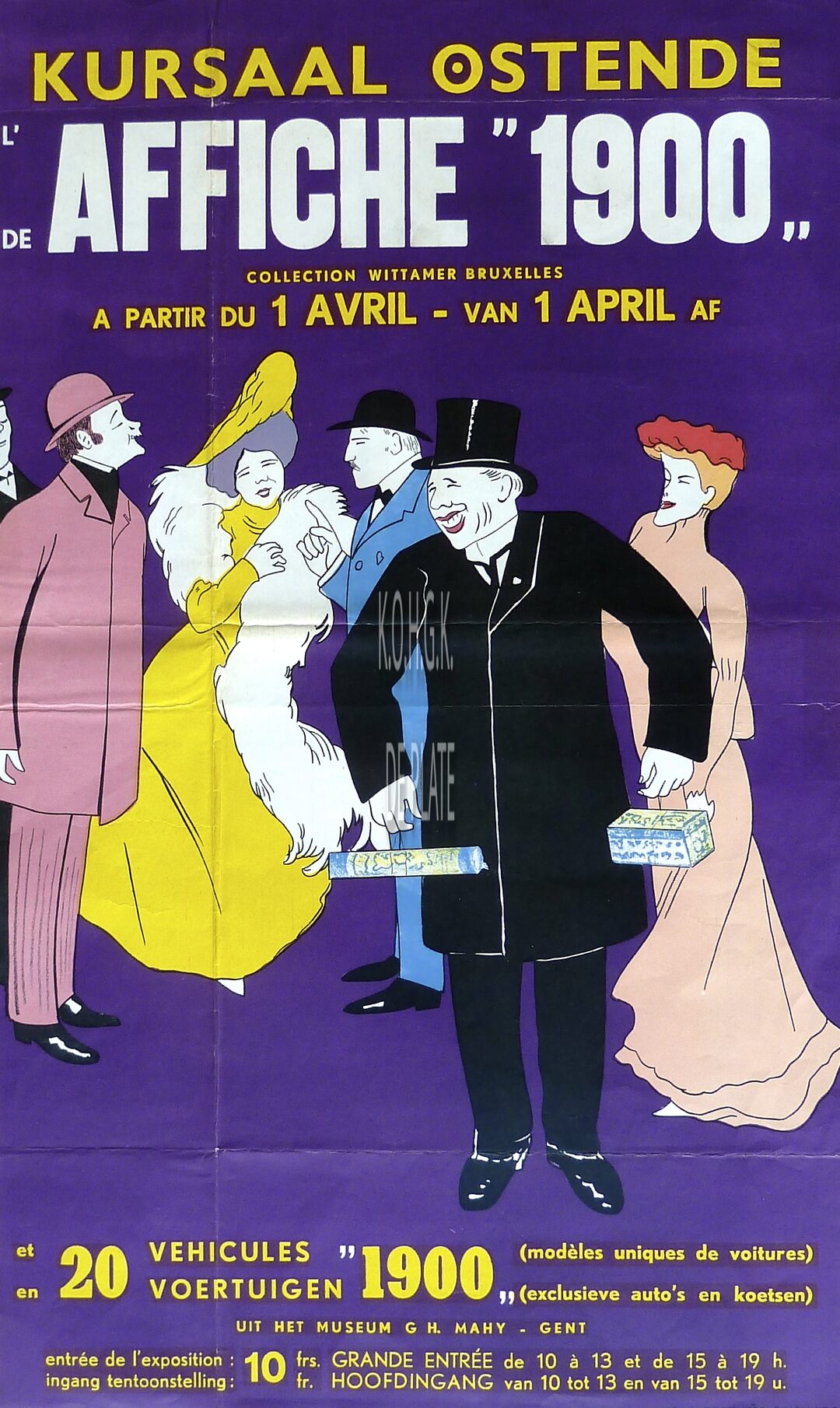 Formaat : 60 x 36 cm. - De affiche "1900", collection Wittamer Bruxelles en 20 voertuigen "1900", exclusieve auto's en koetsen uit het museum G. H. Mahy, Gent. Litho, Desmyter Diksmuide