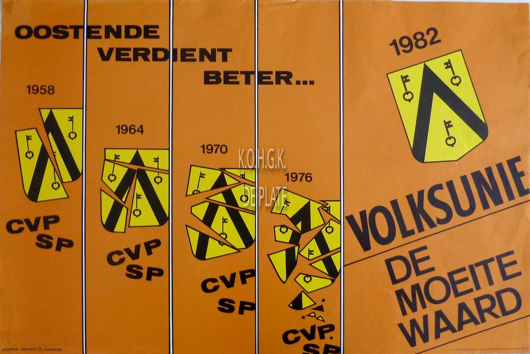 Formaat : 40 x 59 cm. Ontwerp : Geuvels Ch. Oostende. Volksunie de moeite waard