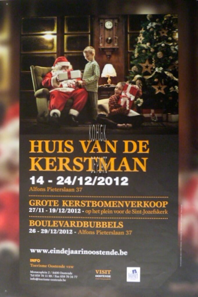 Formaat : 60 x 40 cm. Huis van de kerstman 14-24/12/2012 Alfons Pieterslaan 37. Grote kerstbomenverkoop 27/11-19/12/2012 op het plein voor de Sint-Jozefskerk. Boulevardbubbels 26-29/12/2012 Alfons Pieterslaan 37