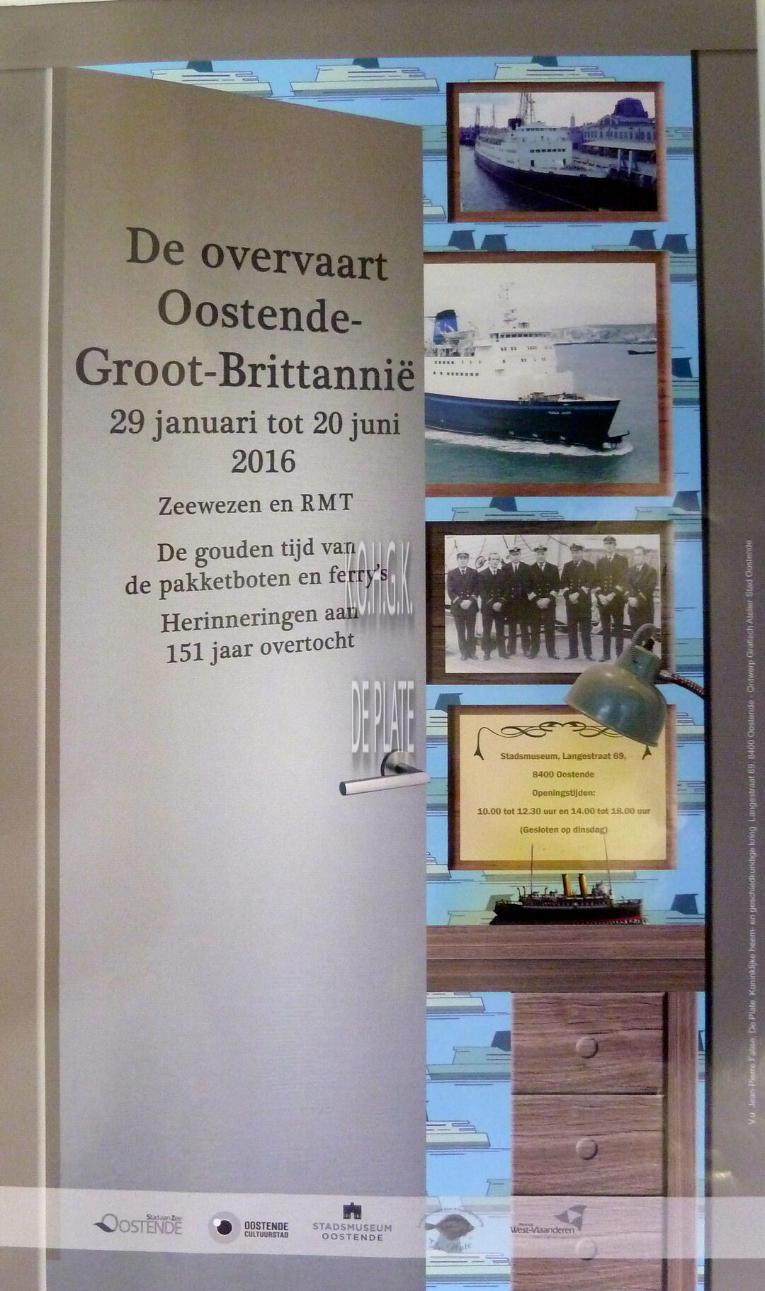 Formaat : 62 x 37 cm. Ontwerp : Grafisch Atelier Stad Oostende. Zeewezen en RMT. De gouden tijd van de pakketboten en ferry's. Herinneringen aan 151 jaar overtocht.