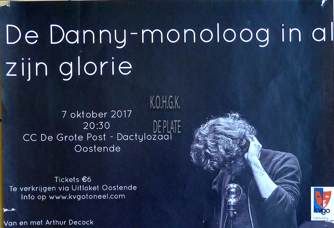 Affiche : KVGO Toneel. De Danny-monoloog in al zijn glorie. Cultuurcentrum De Grote Post. 07/10/2017