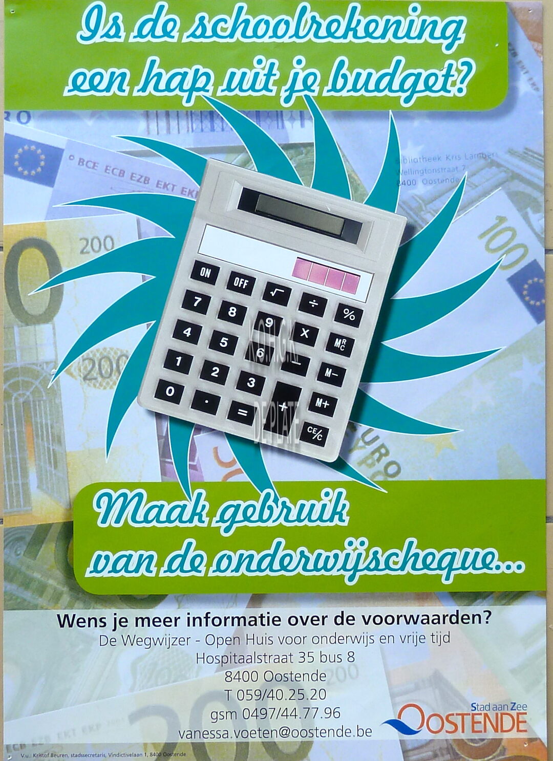Formaat : 42 x 30 cm. - Maak gebruik van de onderwijscheque. De Wegwijzer - Open Huis voor onderwijs en vrije tijd. Hospitaalstraat 35, bus 8, 8400 Oostende