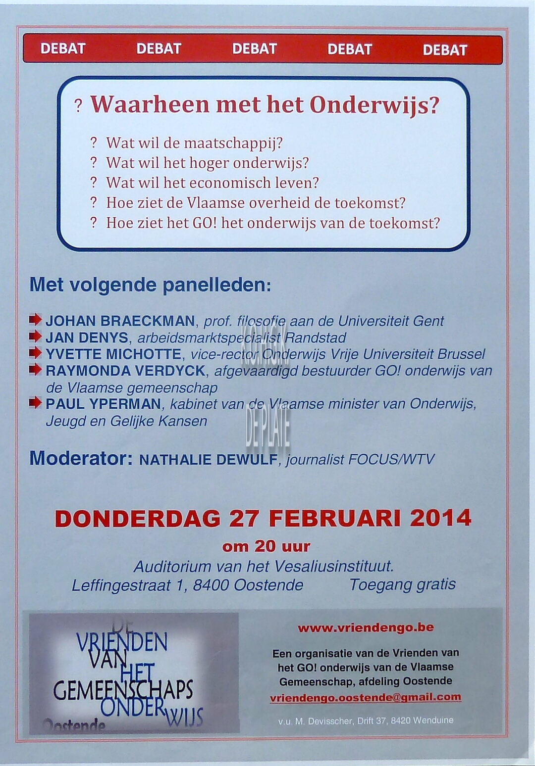 Formaat : 42 x 30 cm. - Met volgende panelleden : Johan Braeckman, Jan Denys, Yvette Michotte, Raymonda Verdyck, Paul Yperman. Moderator : Nathalie Dewulf. Vesaliusinstituut. Leffingestraat 1, 8400 Oostende