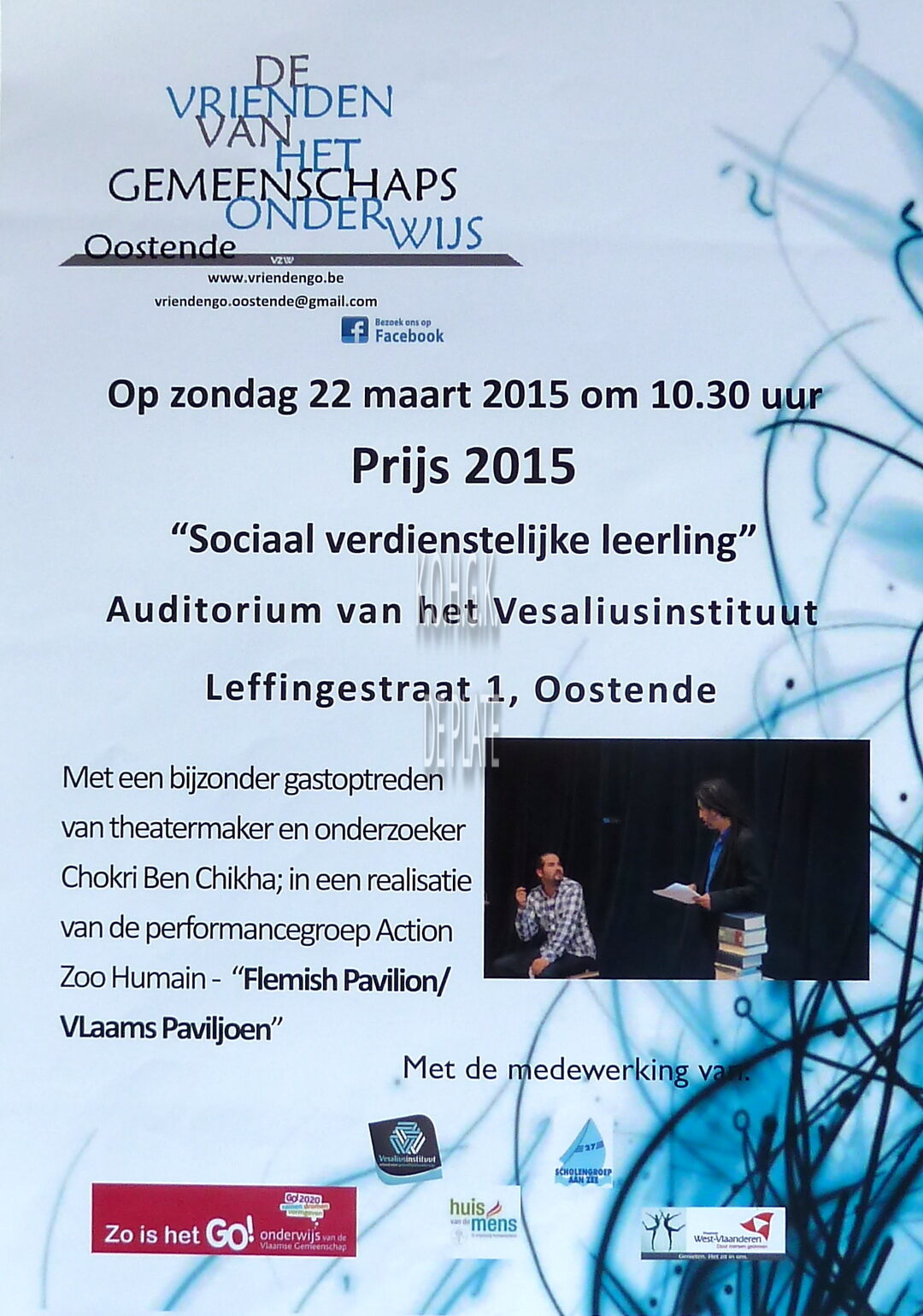 Formaat : 42 x 30 cm. - Vesaliusinstituut. Leffingestraat 1, Oostende. Met een bijzonder gastoptreden van theatermaker en onderzoeker Chokri Ben Chikha ; in een realisatie van de performancegroep Action Zoo Humain - "Flemish Pavilion / Vlaam Paviljoen