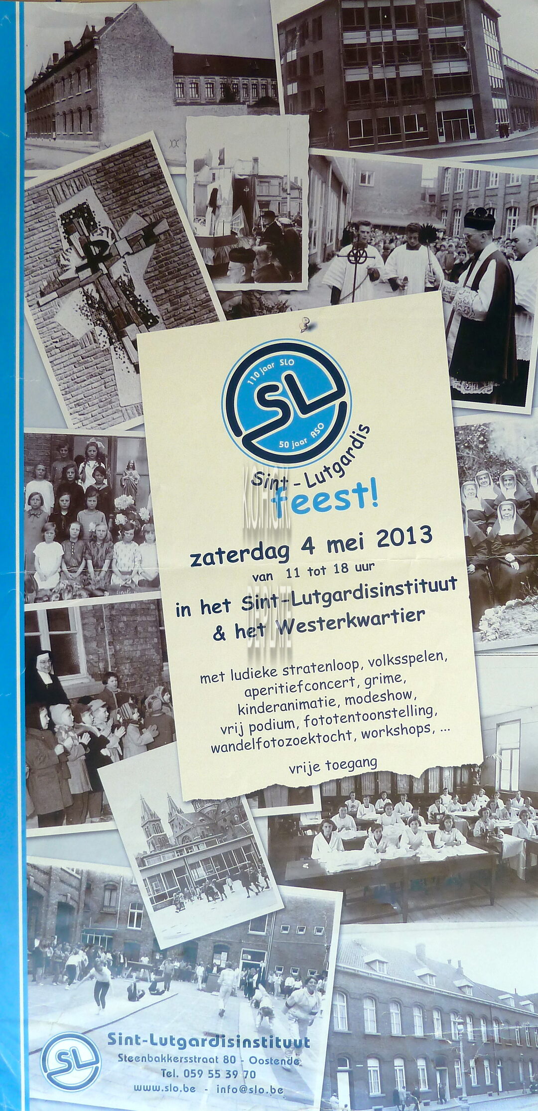 Formaat : 62 x 30 cm. - Sint-Lutgardisinstituut. Steenbakkersstraat 80, Oostende. - Met ludieke stratenloop, volksspelen, aperitiefconcert, grime, kinderanimatie, modeshow, vrij podium, fototentoonstelling, wandelfotozoektocht, workshops