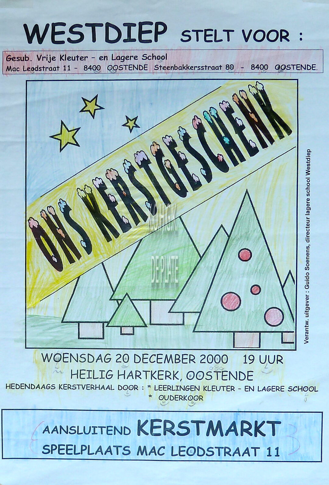 Formaat : 42 x 30 cm. - Gesub. Vrije Kleuter- en Lagere School. Mac Leodstraat 11, 8400 Oostende. Steenbakkersstraat 80, 8400 Oostende. Hedendaags kerstverhaal door : leerlingen kleuter- en lagere school. Ouderkoor. Aansluiten Kerstmarkt. Speelplaats Mac Leodstraat 11