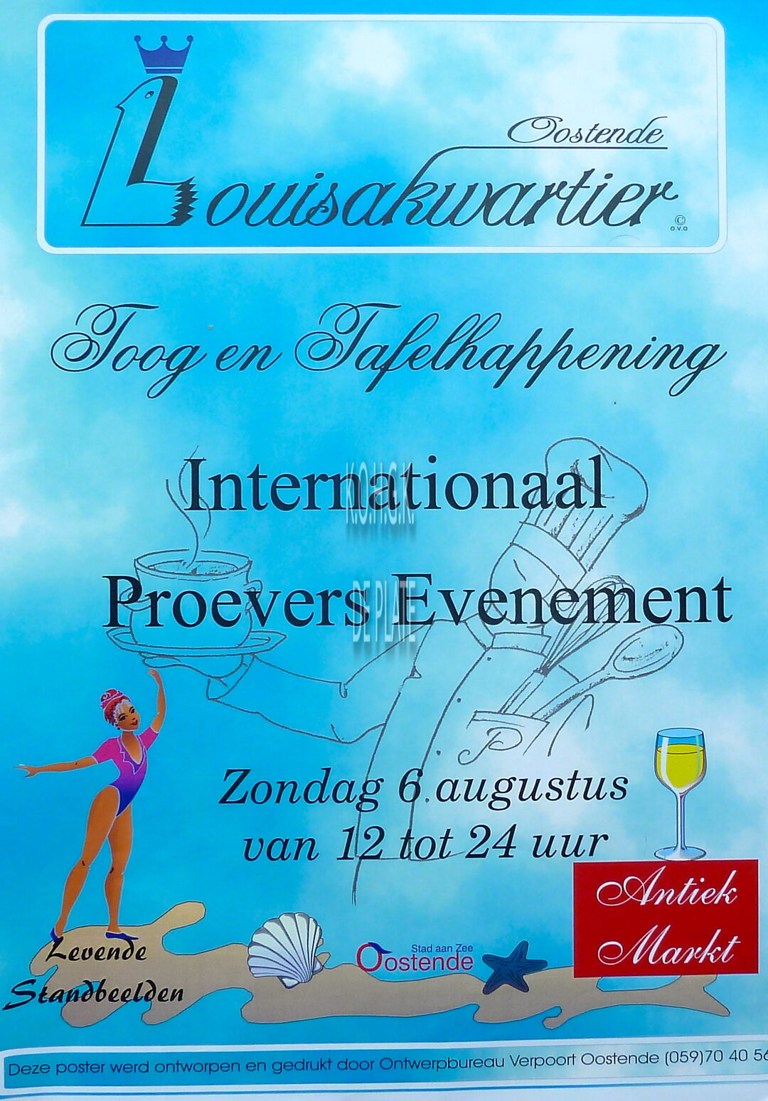 Affiche : Toog- en Tafelhappening. Internationaal Proevers Evenement. Louisakwartier. 06/08/.... (?)