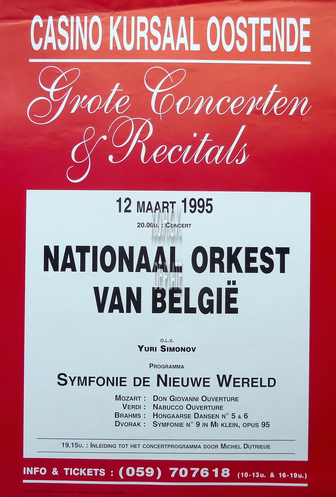 Formaat : 60 x 42 cm. - o.l.v. Yuri Simonov. Programma : Mozart, Verdi, Brahms, Dvorak. Inleiding tot het concertprogramma door Michel Dutrieue