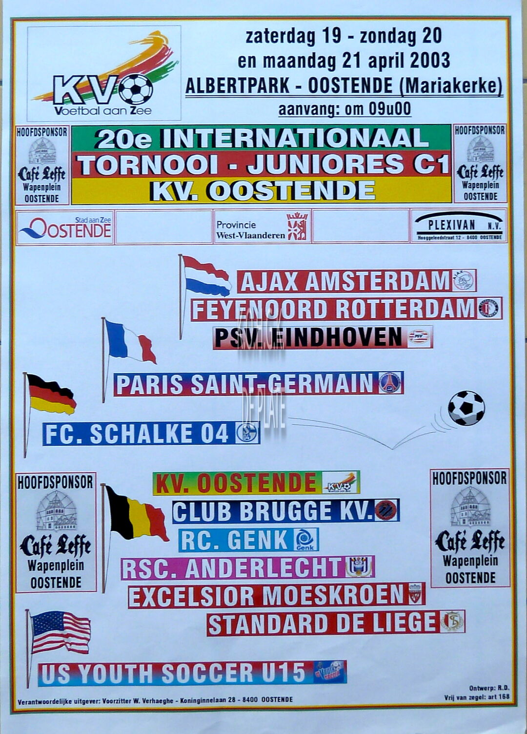 Affiche : KV Oostende. 20e Internationaal Tornooi-Juniores C1 KV.Oostende. Albertpark. 19-21/04/2003