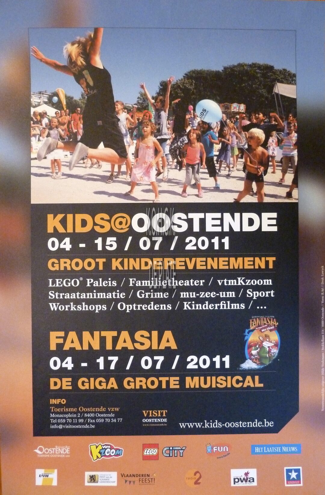 Formaat : 60 x 40 cm. - Groot kinderevenement. Lego paleis, familietheater, vtmKzoom, straatanimatie, grime, Mu-zee-um, sport, workshops, optredens, kinderfilms... Fantasia : 04-17/07/2011 ; De giga grote musical