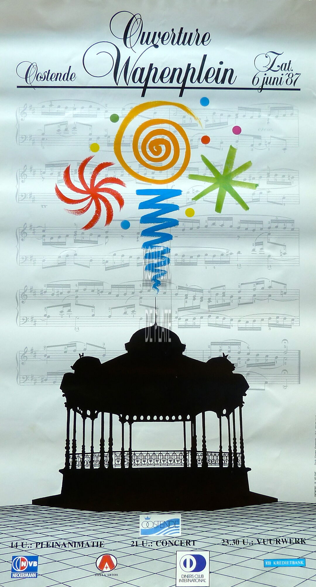 Formaat : 55 x 30 cm. - Pleinanimatie, Concert, Vuurwerk. - Ontwerp : R. Velghe