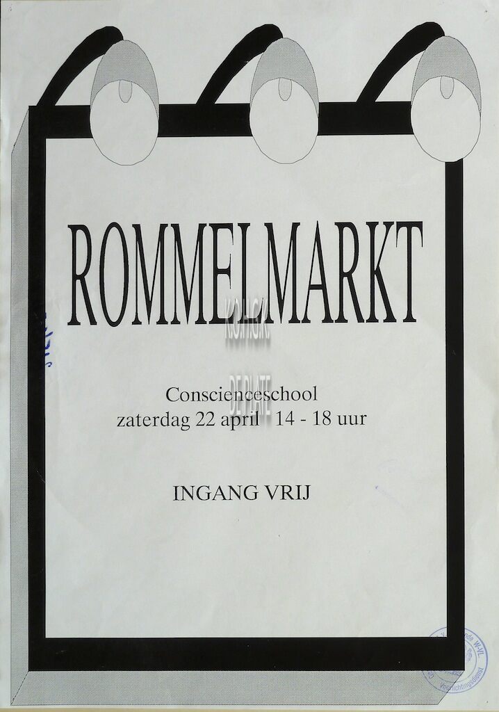 Affiche : Rommelmarkt. Conscienceschool. 22 april .... (?)