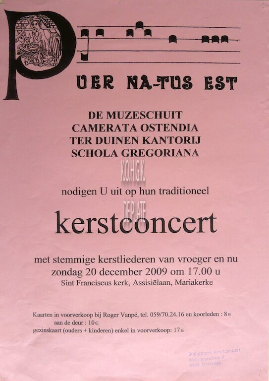 Formaat : 42 x 30 cm. De muzeschuit, Camerata Ostendia, Ter Duinen Kantorij, Schola Gregoriana.