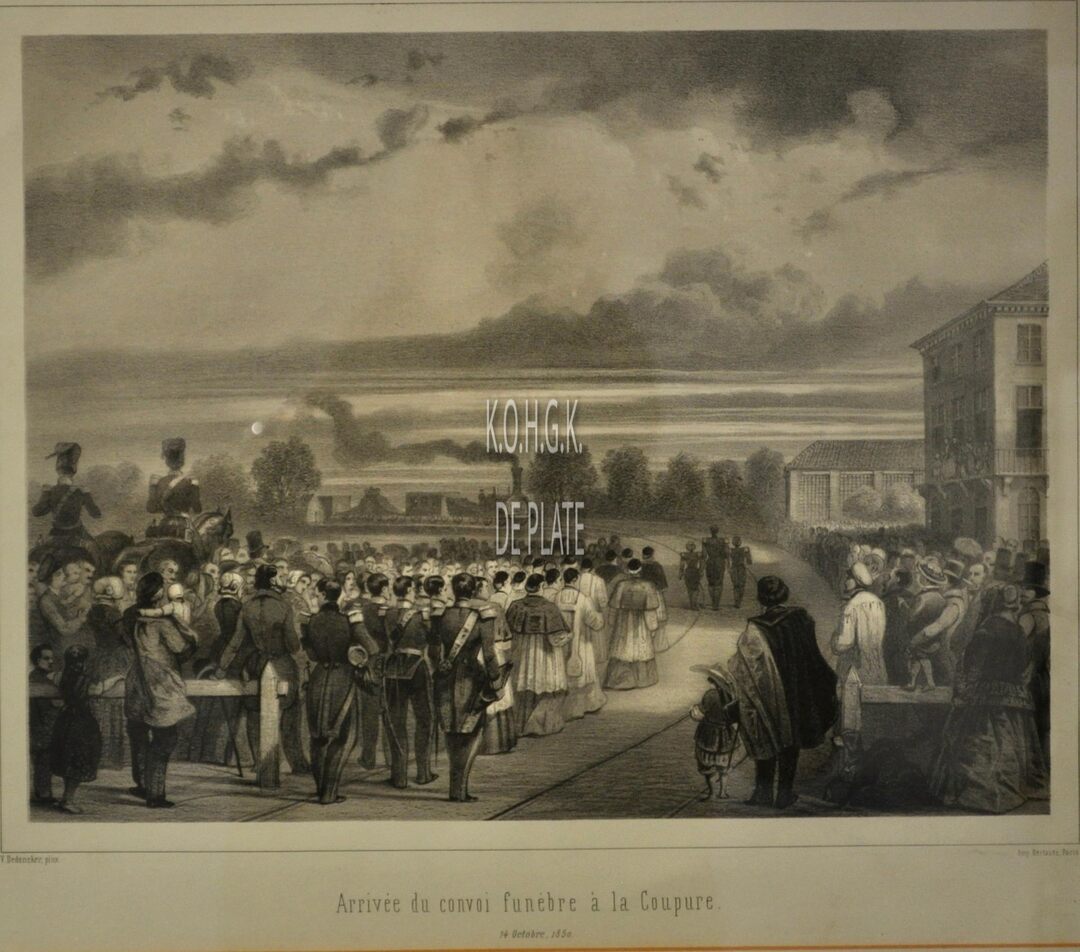 Rechtsboven : nr. 3 Linksonder : V. De Donker Pinx - Rechtsonder : Berlauts Paris - Midden : Arrivée du convoi funèbre à la Coupure 14 oktober 1850