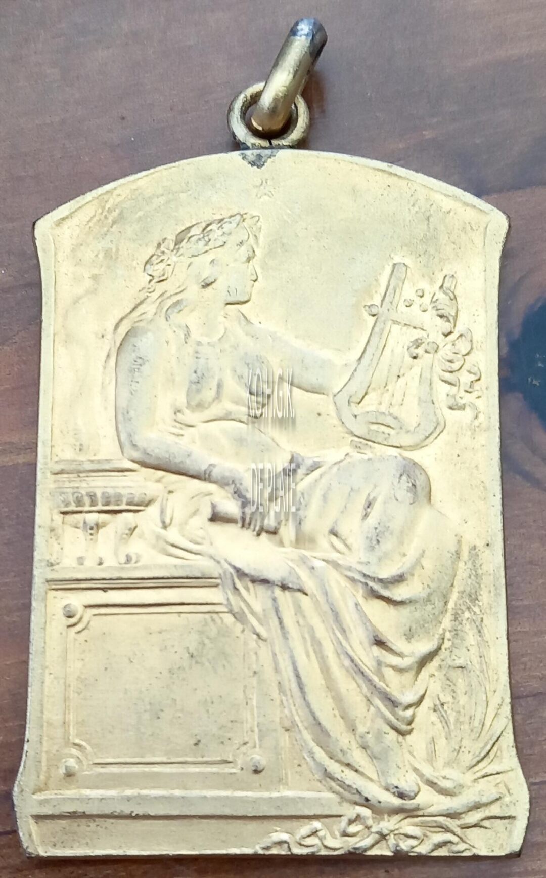 Op de voorzijde : de muze Terpsichore gezeten op een troon, met een lier in de linkerhand en boekrol in de rechterhand, haar rechterarm rustend op een zuil, rechtsonder palmbladeren samengestrikt. Boven haar hoofd een stralende ster