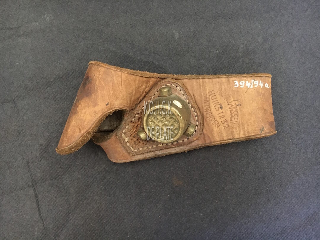 Oud inventarisnummer : 394/94a. - Een langwerpige, leren lap die tijdens het naaien van zeilen rond de hand gedragen wordt om de handpalm te beschermen. Er is een opening voor de duim en ter hoogte van de muis van de hand is een hard, metalen plaatje bevestigd waartegen de naald geduwd kan worden tijdens het naaien. - Vervaardigd door de Firma Janssen, Huikstraat 32, Antwerpen
