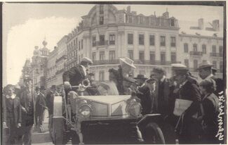 Op de Zeedijk nabij het Casino-Kursaal, stapt een dame uit een automobiel. Verlofgangers en plaatselijke jongeren vergapen zich aan het voertuig. Een Duitse tourist heeft zijn dagblad onder de arm.