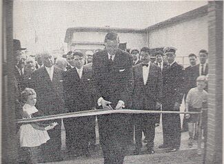 Foto : 14 mei 1961, officiële opening van het slachthuis (Slachthuiskaai) door burgemeester Jan Piers