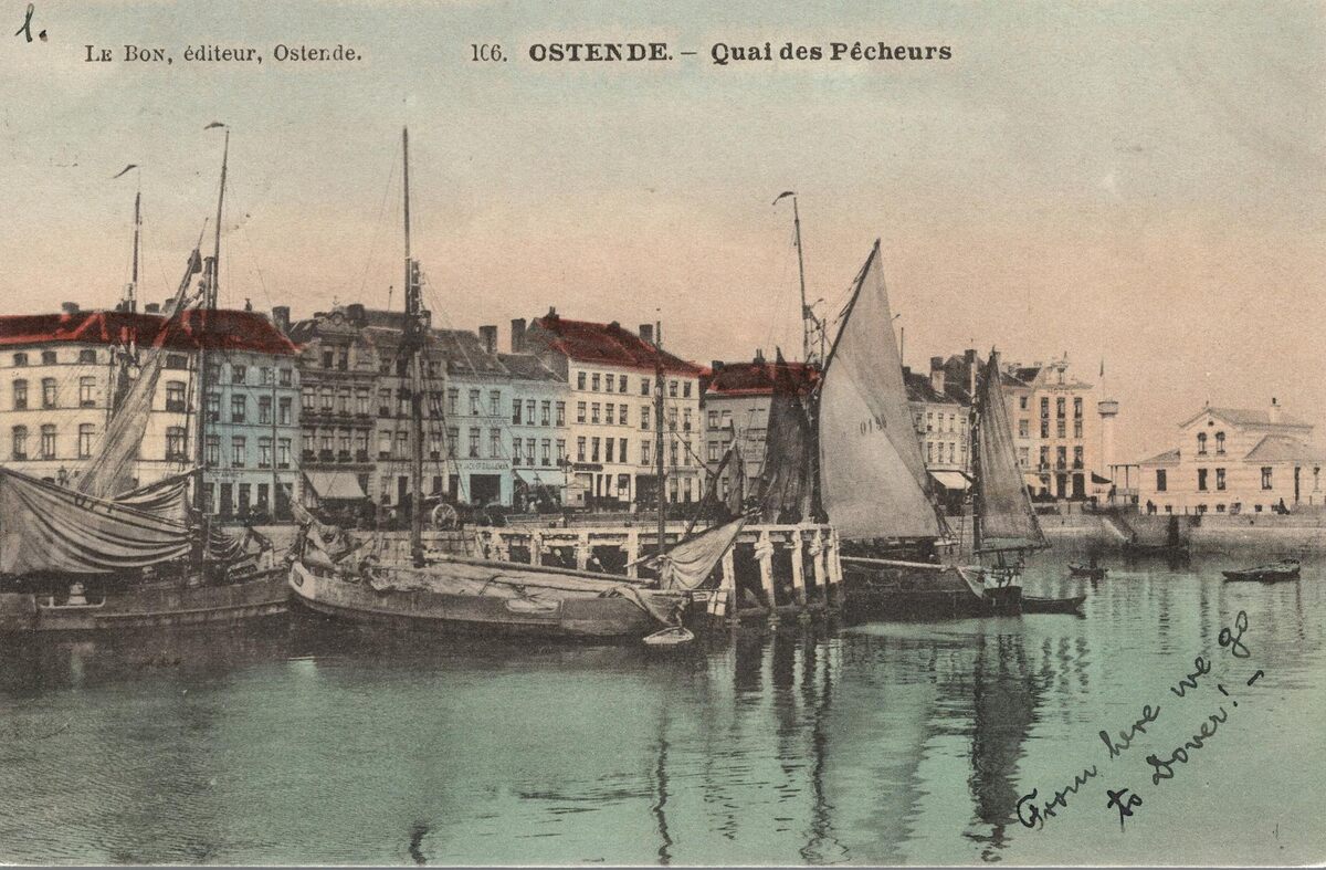 Le Bon, éditeur Ostende, N° 106. - Ostende. - Quai des Pêcheurs. - Bijgekleurde kaart. Beschrijving zie inventarisnummer : 2015/0387g