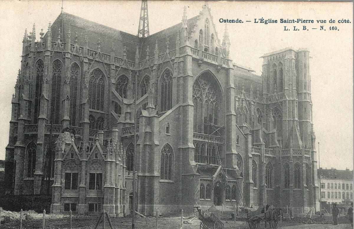 L.L.B. - N. 160. - Ostende. - L'Eglise Saint-Pierre vue de côté. - De zijgevel van de onafgewerkte Sint Petrus- en Pauluskerk in de Jozef II-straat