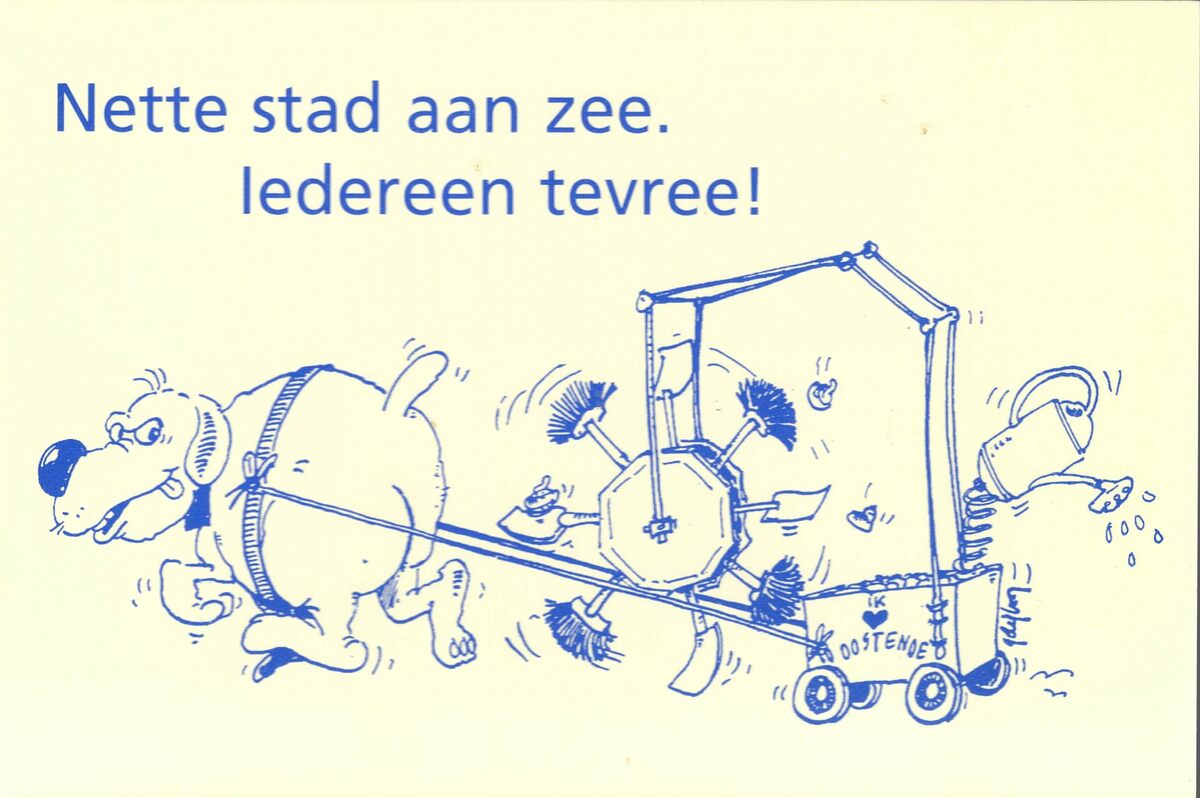 Aangenaam wonen in een nette stad. Daar streeft het Oostendse stadsbestuur naar. Help mee aan een schoon Oostende! Doen hondenkatjes steeds in zakjes. Werp afval in de korven. Hout het trottoir en de straatgoot proper