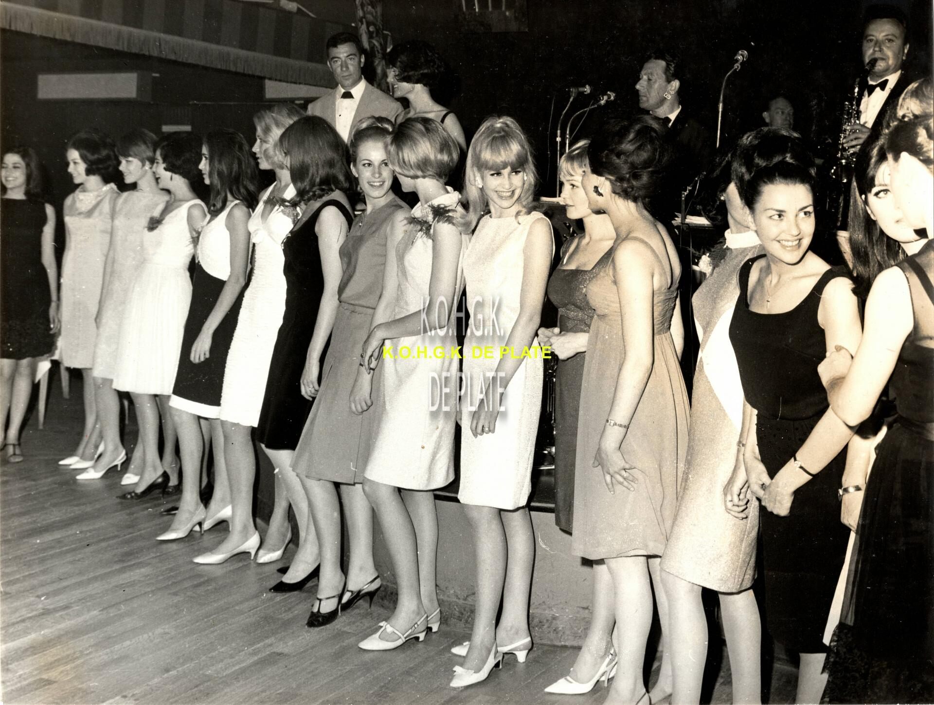 Formaat : 18 x 24 cm. - De missen in de nightclub "La Champagne". Op de achtergrond, het orkest "Merino Costa y su Orquesta"