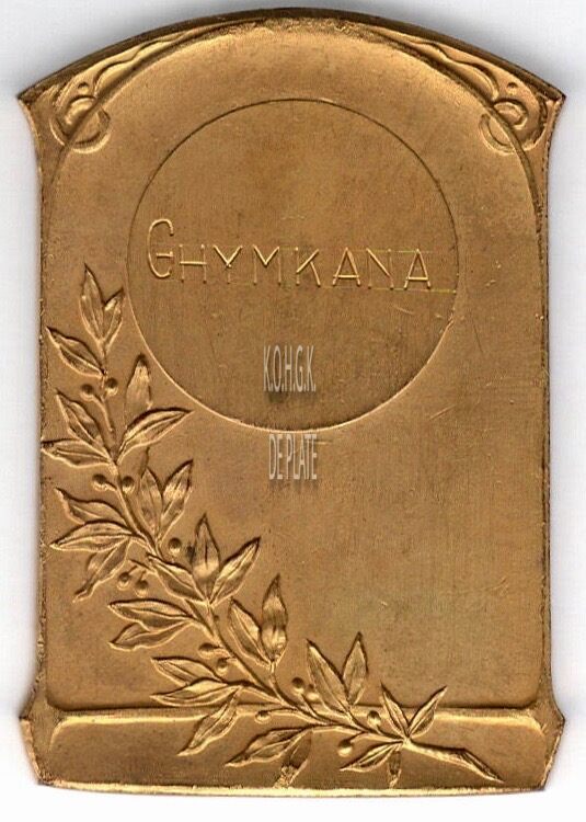 Op de keerzijde : linksboven naar rechtsonder een lauriertak, centraal boven in een binnen cirkel horizontaal GHYMKANA