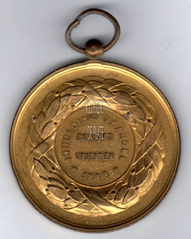 Op de keerzijde : rondom een lauwerkrans, centraal in een cirkel rondom boven INHULDIGING VAANDEL, horizontaal BILLIARD / VRIENDEN, rondom onder ✭ / 1888 / ✭