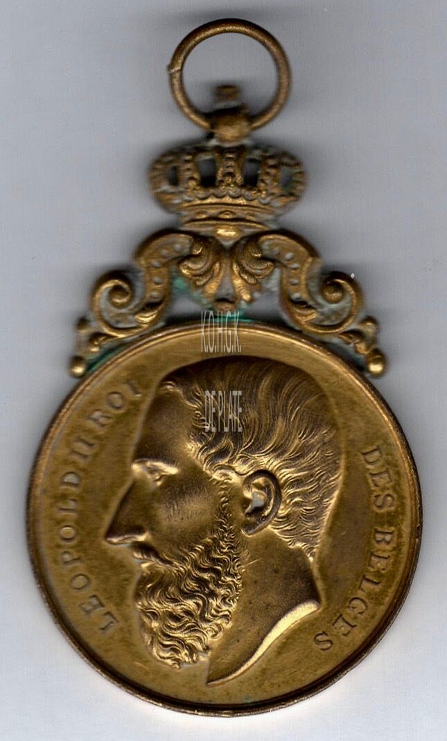 Op de voorzijde : rondom links, LEOPOLD II ROI, centraal het hoofd van koning Leopold II in profiel naar links gericht, rondom rechts DES BELGES