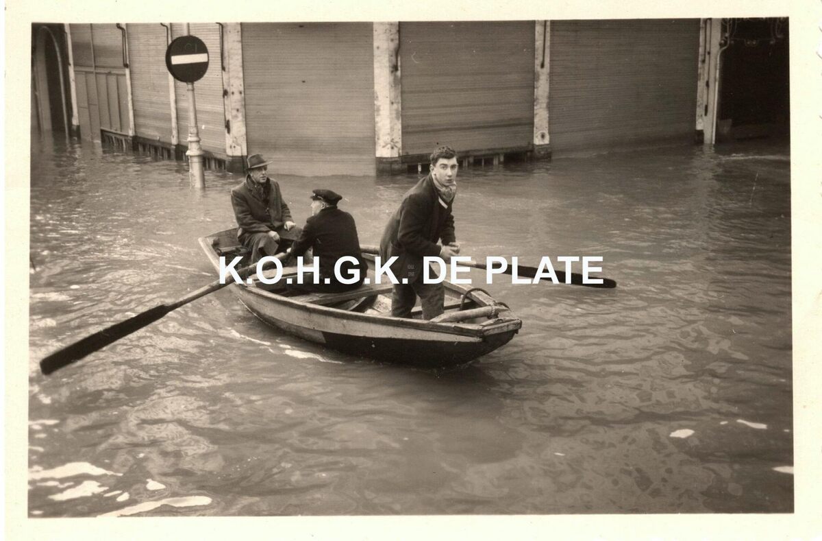 Formaat : 6 x 9 cm. - De hoek van de Vlaanderen- en Langestraat. De jol deed dienst als taxi.