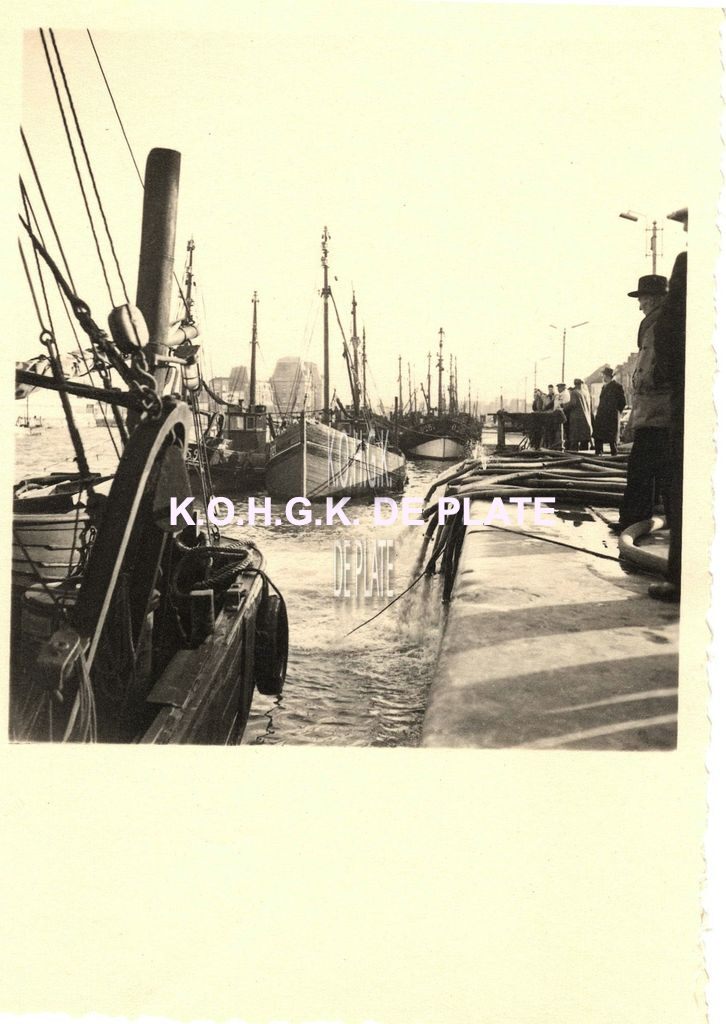 Formaat : 7 x 6 cm. - Vissersvaartuigen in het Montgomerydok langs de Visserskaai