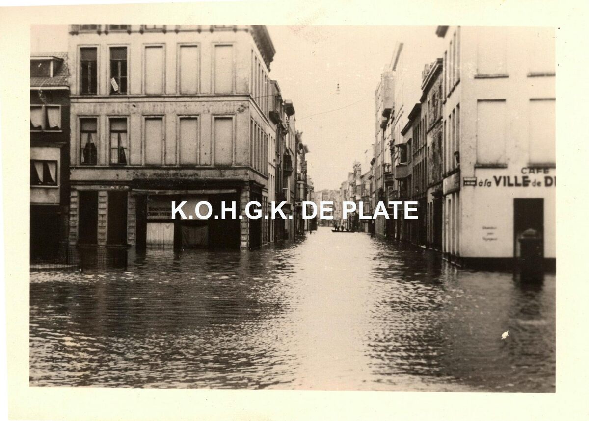 Formaat : 7,5 x 10,5 cm. - Rechtdoor, de Kerkstraat en links, de Sint-Paulusstraat. Rechts, het café "A la Ville de Dieppe"