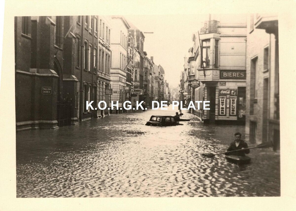 Formaat : 7,5 x 10,5 cm. - De Langestraat, met links, de Anglicaanse kerk. Op de hoek met de Londenstraat, het café "Old England"