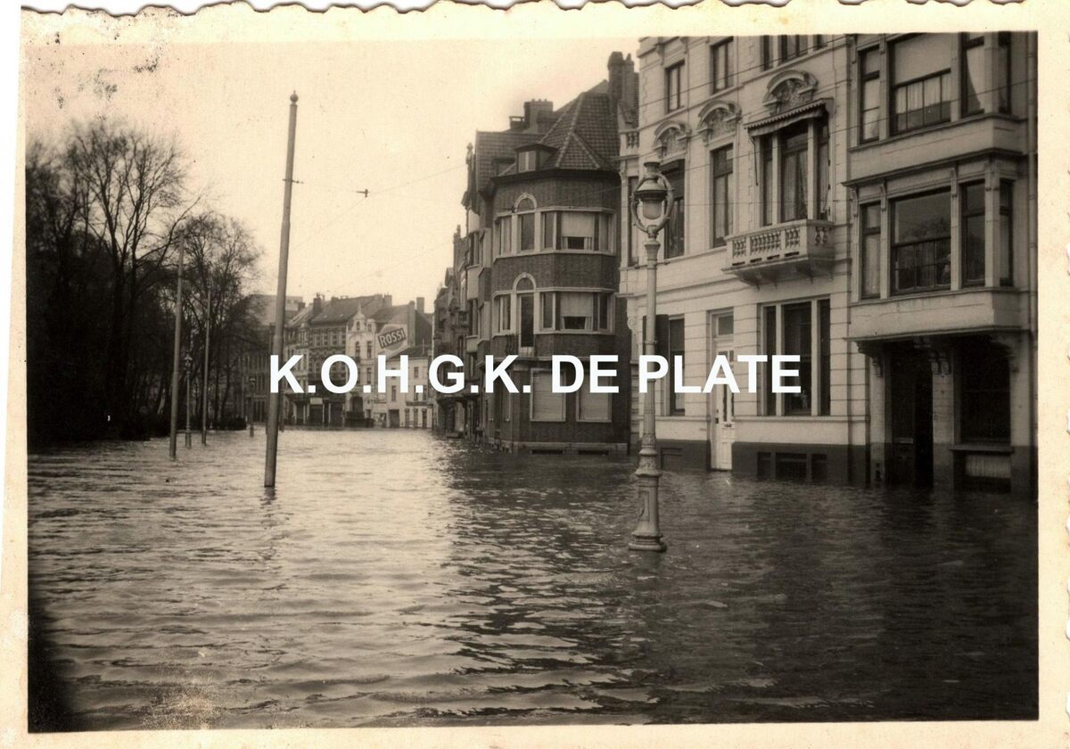 Formaat : 6 x 9 cm. - De Henrik Serruyslaan, met op de hoek van de Euphrosina Beernaertstraat, de woning van notaris Johan Lahaye. Links, het Leopoldpark