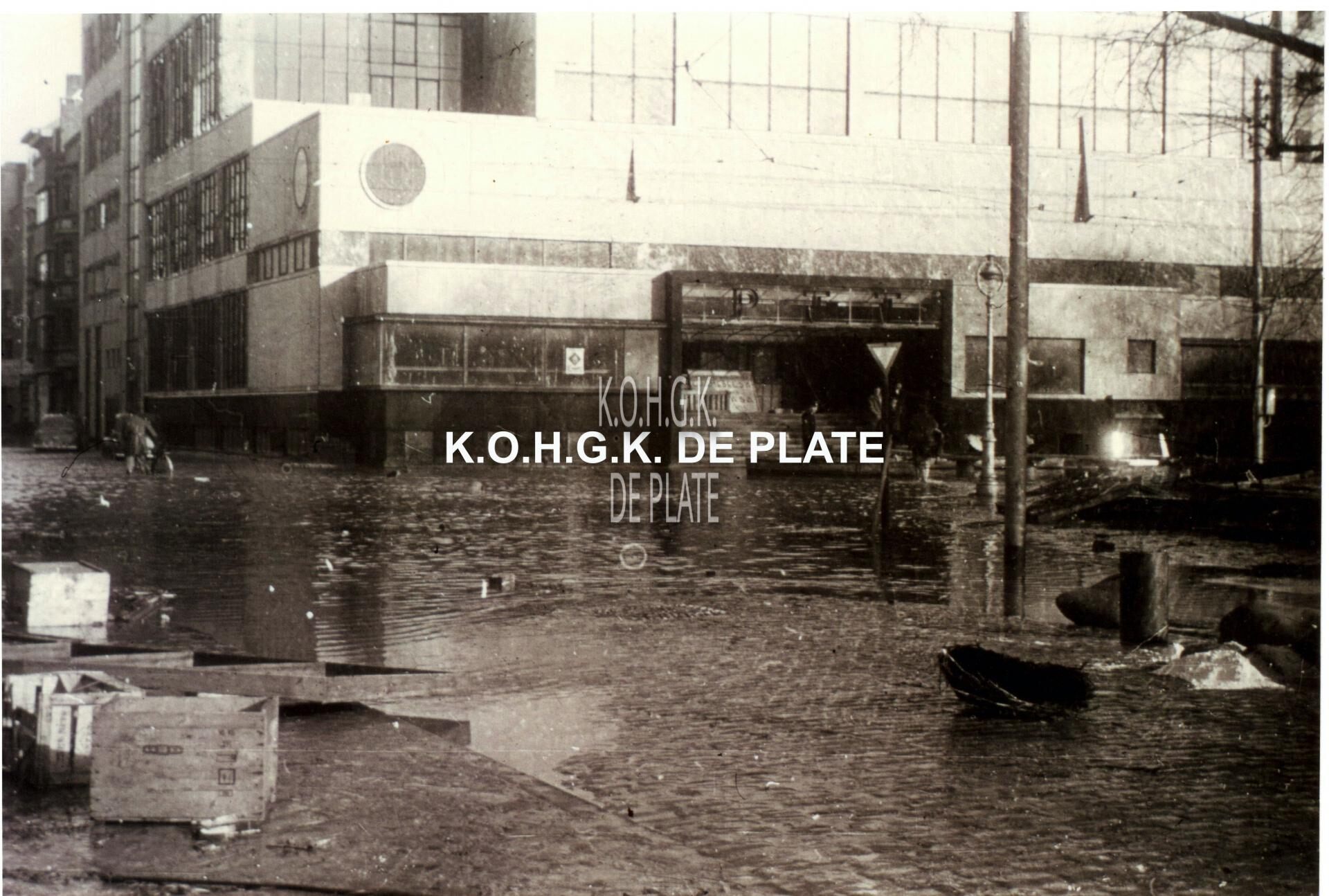 Formaat : 9 x 13 cm. - Het Postgebouw op de hoek van de Hendrik Serruyslaan (rechts) en de Wittenonnenstraat. Zicht vanuit de Karel Janssenslaan