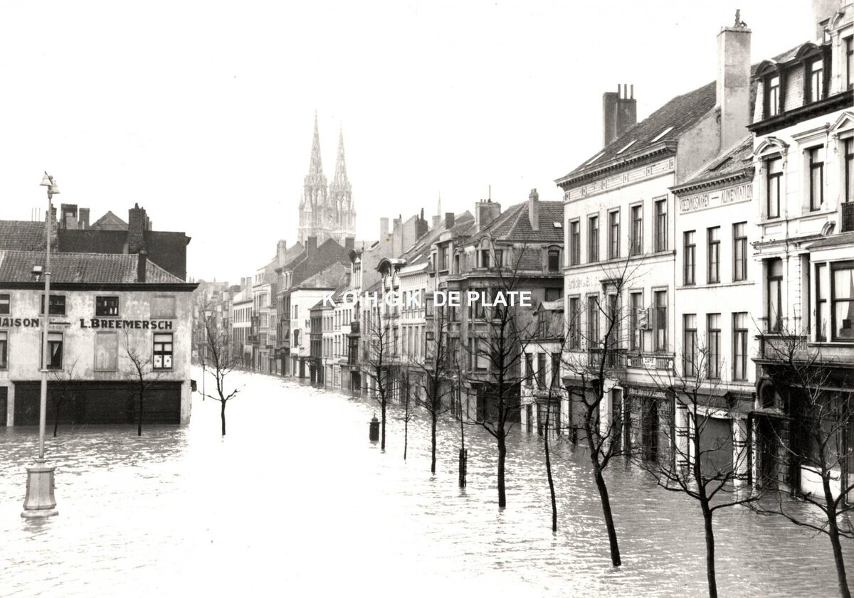Formaat : 12,5 x 17,5 cm. - De Groentemarkt en rechtdoor, de Kaaistraat. Links, de porseleinwinkel van L. Breemersch