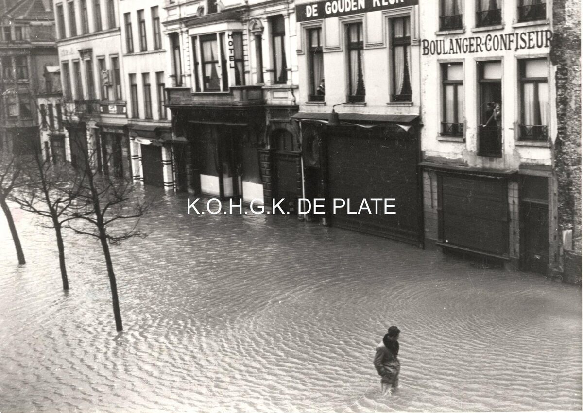 Formaat : 12,5 x 17,5 cm. - De Groentemarkt. De huizenrij tussen de Breidelstraat (rechts) en de Wittenonnenstraat