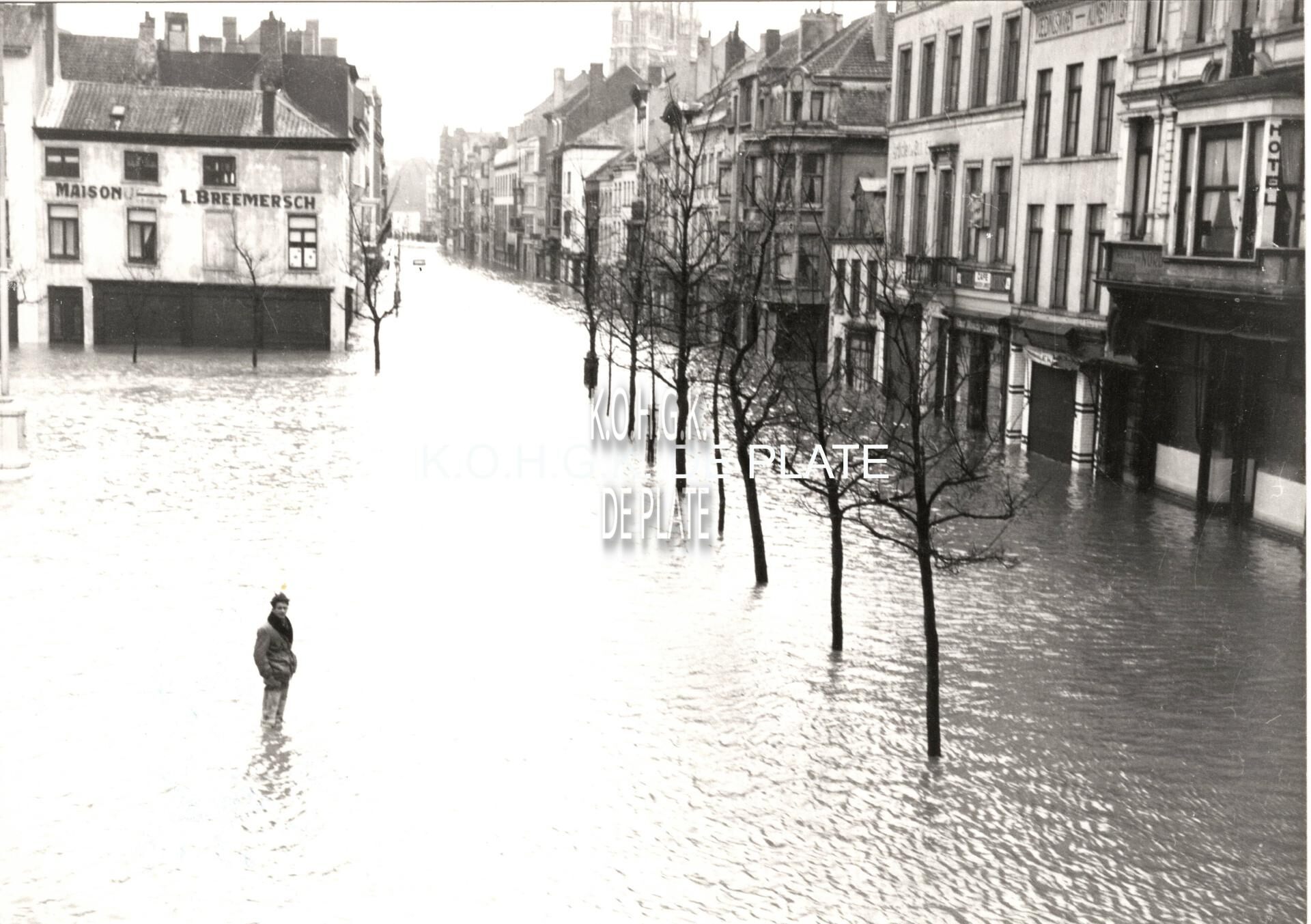 Formaat : 12,5 x 17,5 cm. - De Groentemarkt en rechtdoor de Kaaistraat. Op de hoek met de Dwarsstraat, de porseleinwinkel "Breemersch"