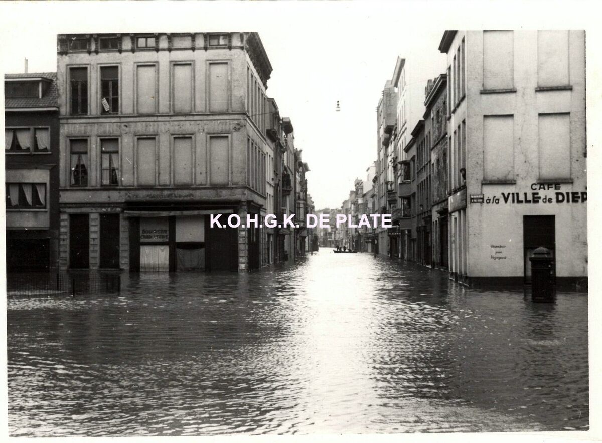 Formaat : 7,5 x 10,5 cm. - Rechtdoor, de Kerkstraat en links, de Sint-Paulusstraat. Rechts, het café "A la Ville de Dieppe"