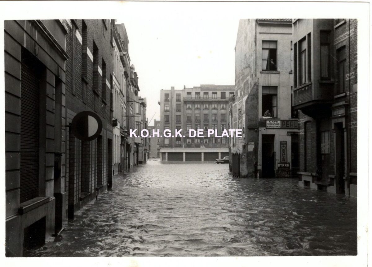 Formaat : 7,5 x 10,5 cm. - De Nieuwstraat richting het Mijnplein. Rechts, op de hoek met de Schippersstraat, Café "'t Klein Ijsland"