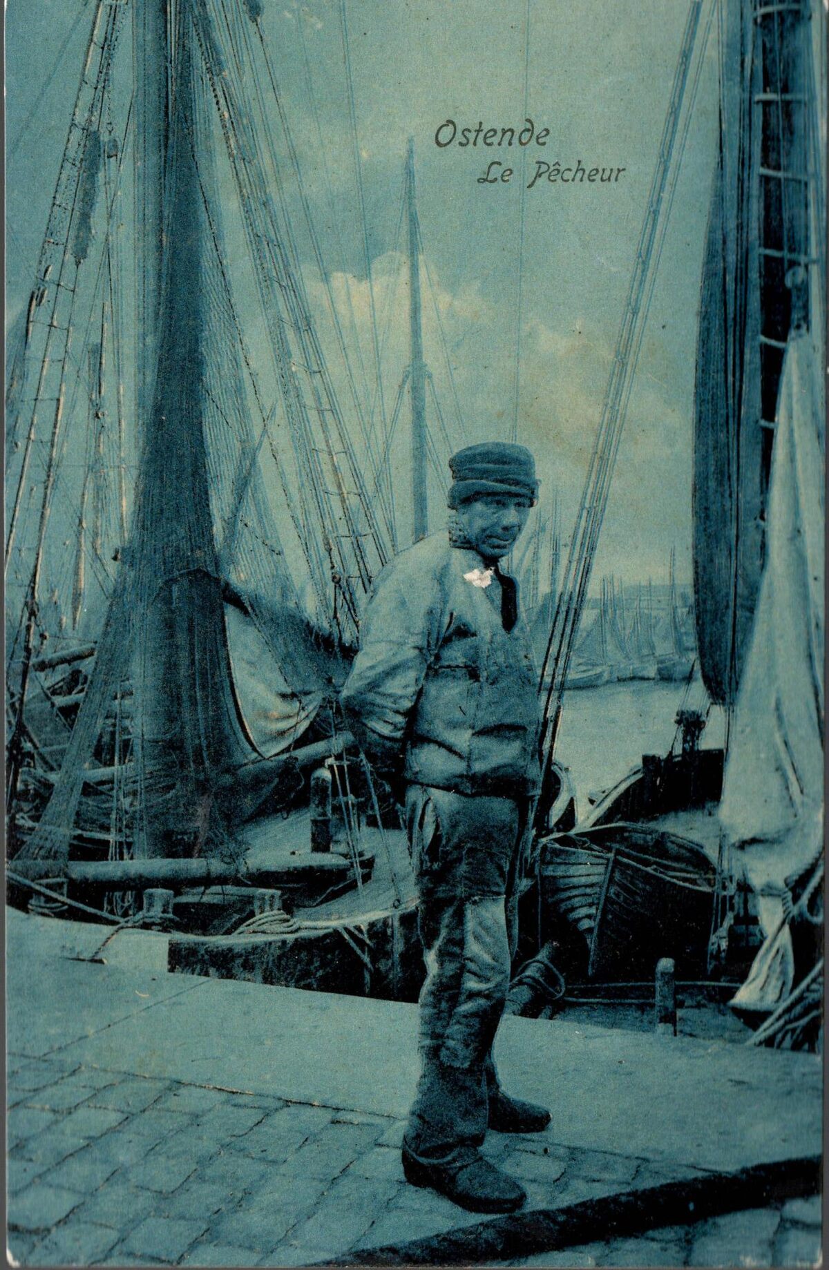 Dr Trenkler C°, Bruxelles, Osd., N°3. - Ostende - Le Pêcheur. - Bijgekleurde kaart. - Visser nabij het Schuildok