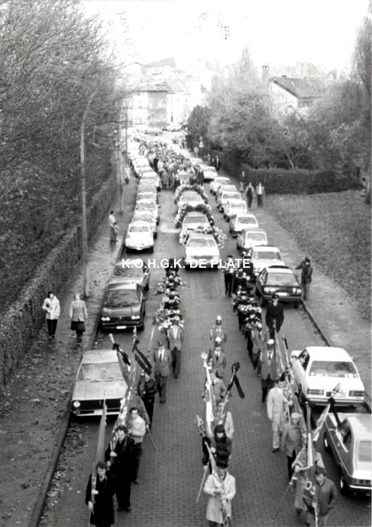 Formaat : 18 x 12,5 cm. - De begrafenisstoet in de Spoorwegstraat