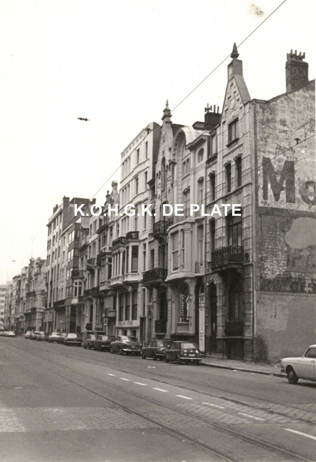 Formaat : 12 x 8 cm. De Koningsstraat richting Marie-Joséplein. Het vierde gebouw van rechts is hotel "Les Etoiles"