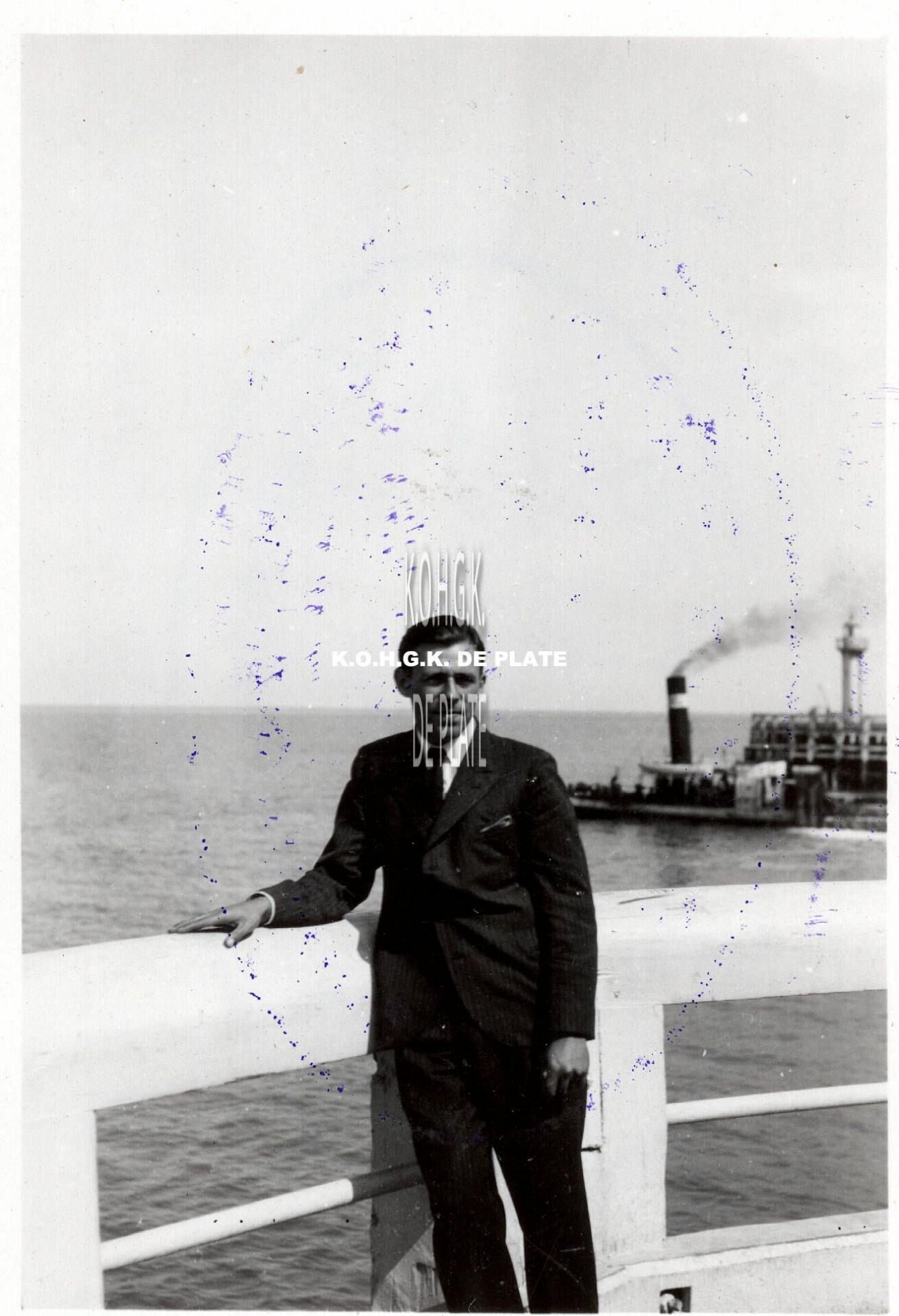 Formaat : 8 x 5,5 cm. - Man poserend op het einde van het Weststaketsel.